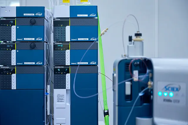 ペプチドマッピングにより、タンパク質の酸化、ジスルフィド結合、脱アミド化などの翻訳後修飾の分析を行います。また、インタクトMSにより、タンパク質の精密質量を測定いたします。